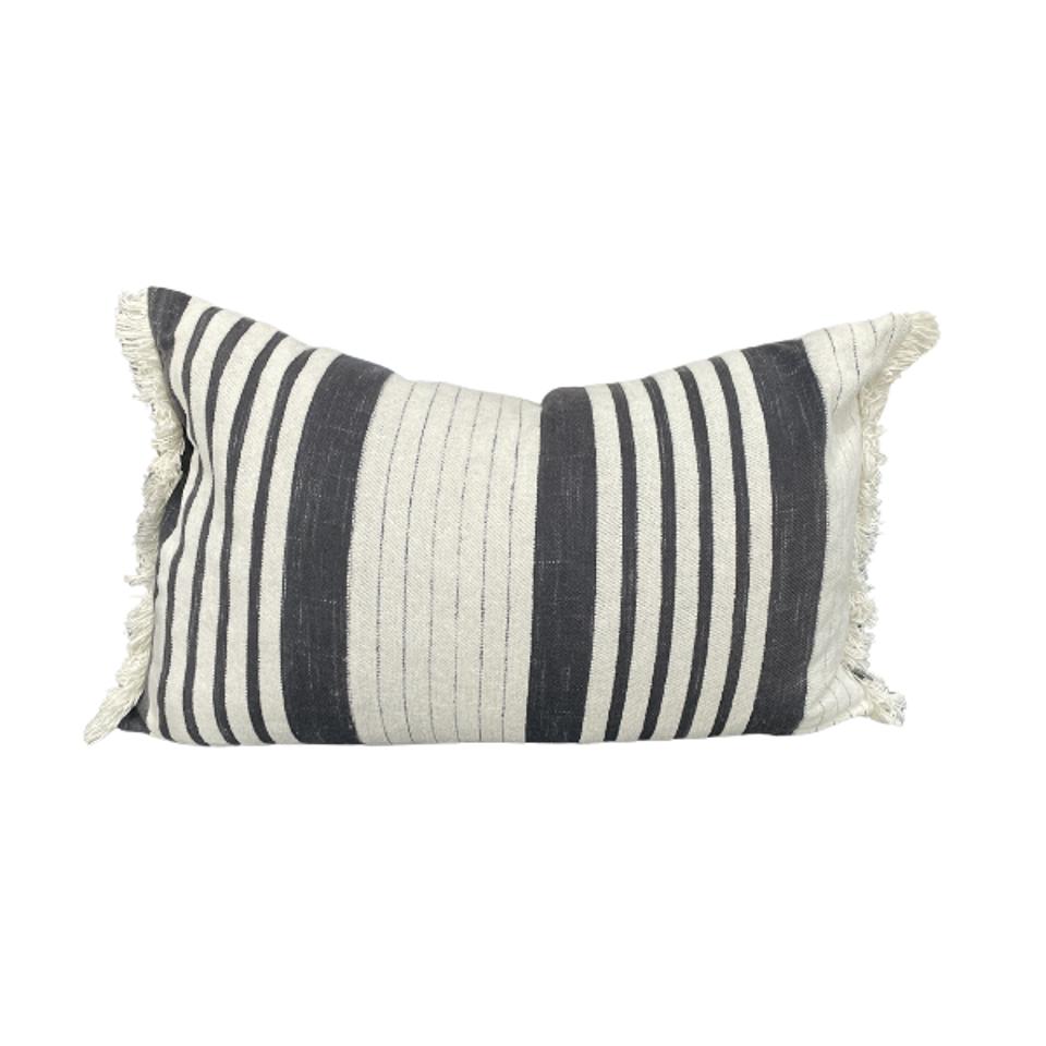 Cream Striped Fringed Cushion