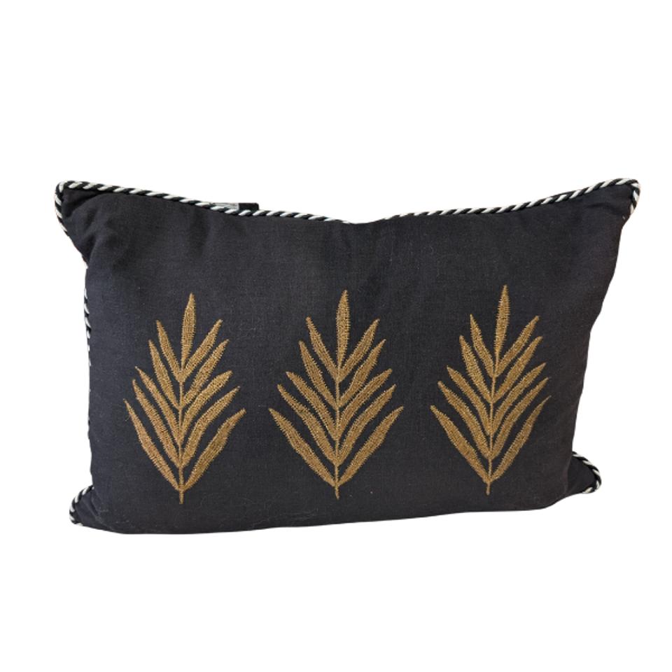 Lumbar Cushion Black w gold embroided leaf